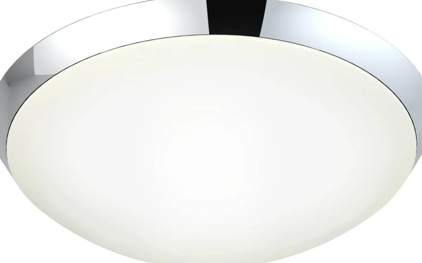 Siracusa plafond för badrum. Vit glaskupol och kromad metallkant runt skärmen. 12W LED integrerat som ger ett bekvämt varmt vitt ljus med 900 lumen, vilket motsvarar cirka 60W traditionell glödlampa. Lampan monteras med skruvar i taket och strömanslutning med fast montering.