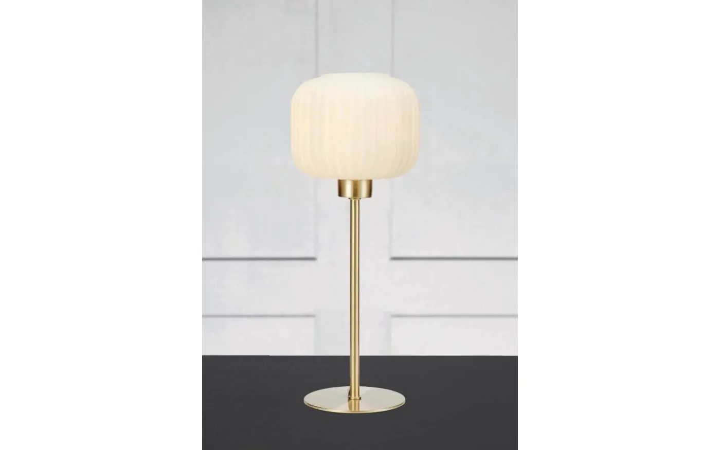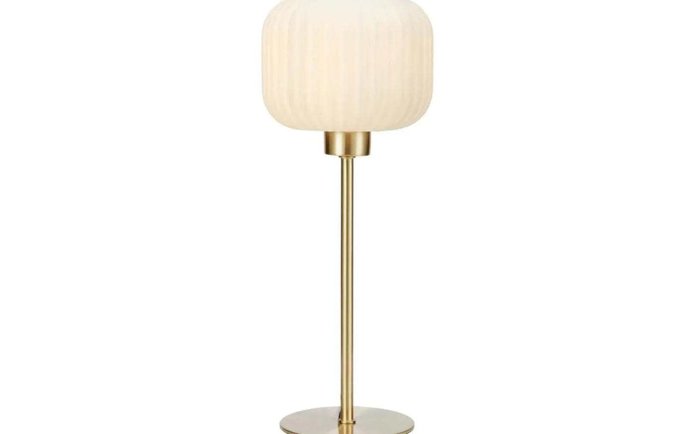 En stilren bordslampa som passar perfekt på ett sidobord eller på sängbordet! Det vita glaset släpper genom ett mjukt och fint ljusflöde. Lampan levereras med 2 meter lång sladd med strömbrytare och stickkontakt för vägguttag.