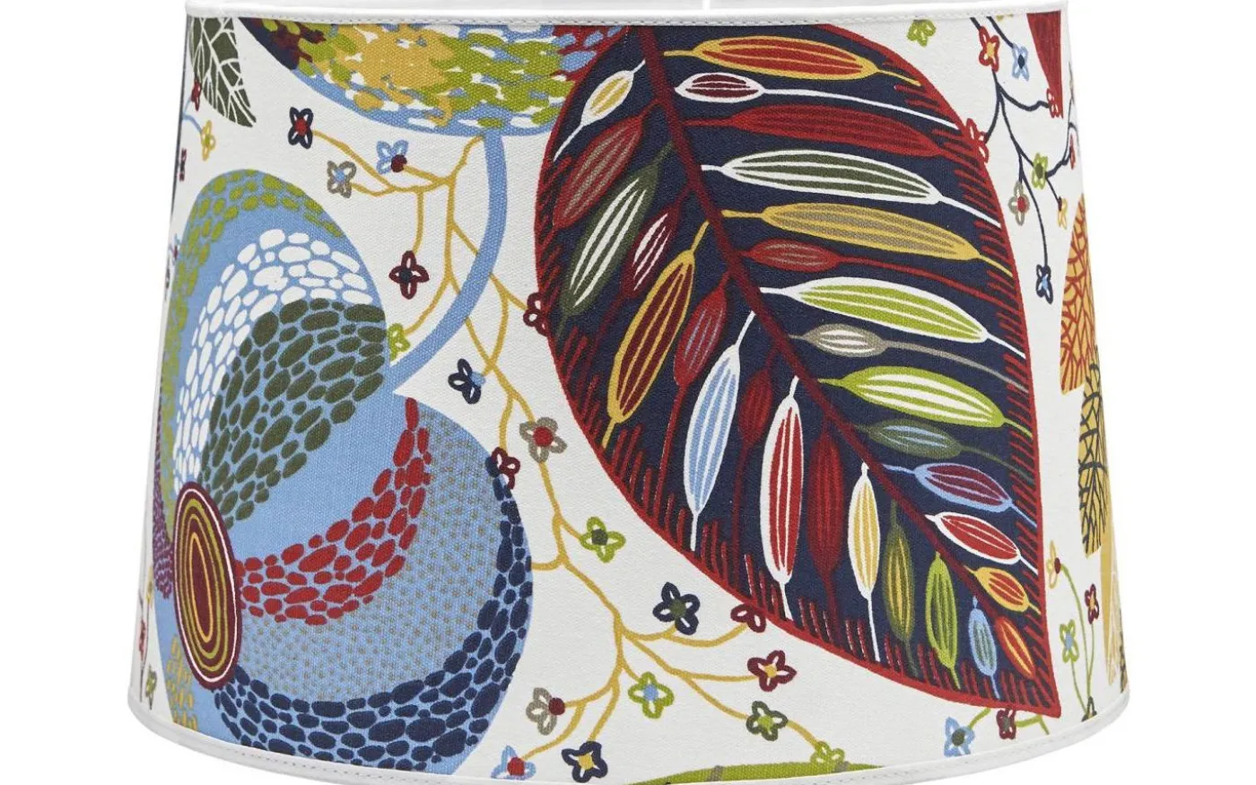 Sofia lampskärm, från välkända PR Home, är i bomullstyg med ett härligt mönster med en vit bakgrund som omges av massa färggladda blommor, blad, stjälkar mm. Denna lampskärm har en diameter på 30cm samt ringfäste avsett för E27-sockel.