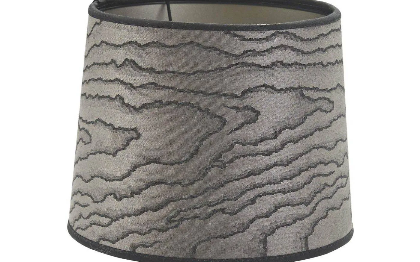 Sofia lampskärm från PR Home är i ett jacquardvävt tyg med moiré-effekt och glansig yta vilket ger en sidenkänsla. Mönstret har en dämpad färgställning och tar för sig med sin bronsfärgade insida och svarta kantband. Lampskärmen har ett E27-ringfäste.