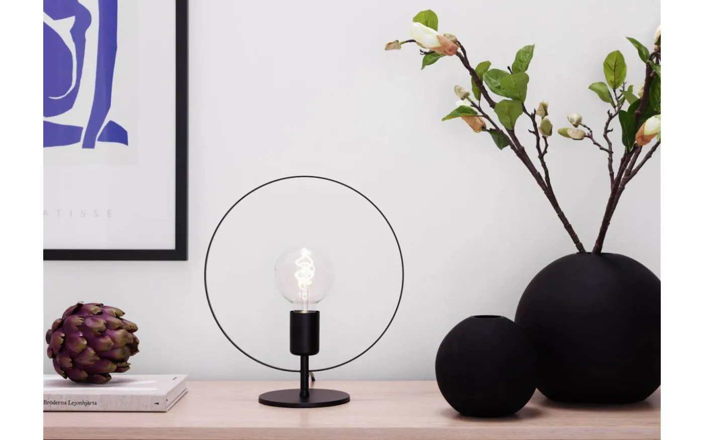 Fina Spartan Ringo bordslampa från Cottex är en modern bordslampa i svartfärgad metall. Spartan Ringo gör sig vackert i fönstret eller som dekorationsbelysning på ett sidobord. Denna bordslampa matchar du bäst med en av våra dekorativa ljuskällor i LED för ett riktigt toppresultat!