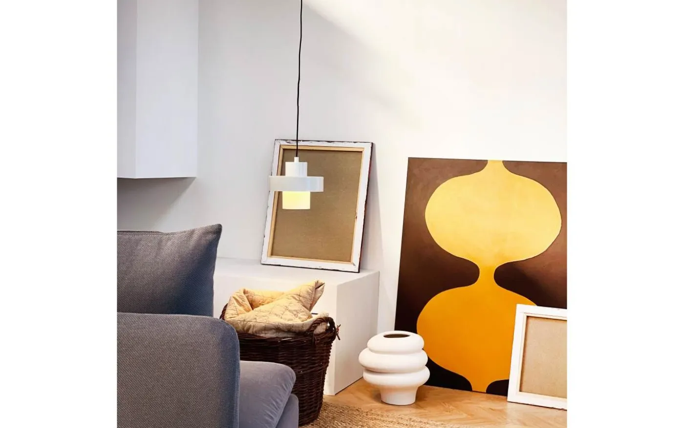 Tillverkad av metall med en blank finish ger lampdesignen en yta som förstärker de geometriska kurvorna och kanterna samtidigt som den skapar en balanserad kontrast med inredningsmaterial som sten, trä och textilier. Beroende på val av färg och placering kan lamporna fungera som ett skulpturellt element såväl som en ljuskälla för köksbordet, skrivbordet, vardagsrummet eller sovrummet.