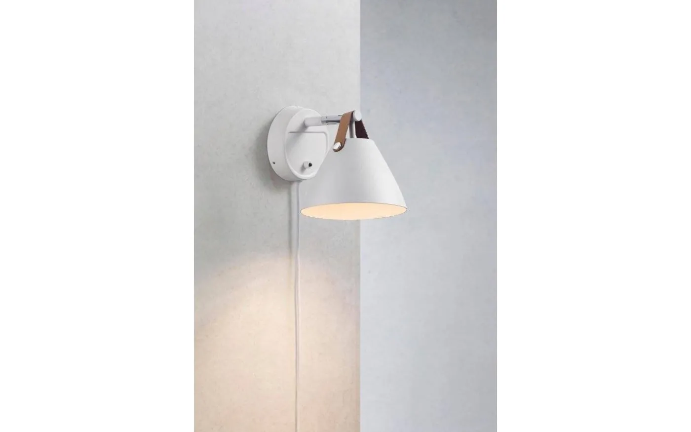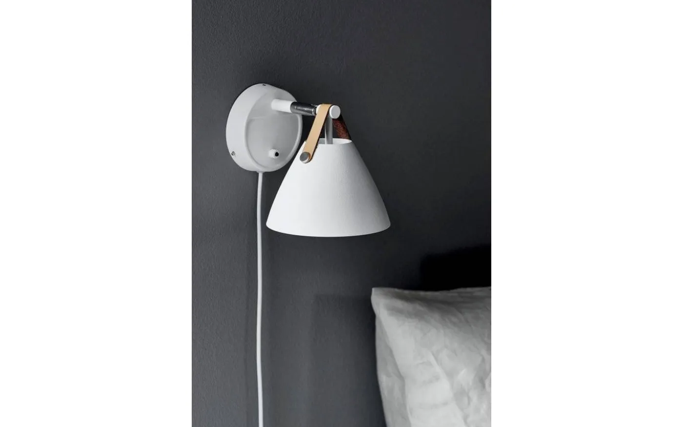 Strap 15, från danska Design for the people, är en stilren vägglampa i modern skandinavisk design. Denna vägglampa är gjord av vitlackerad metall och har den utmärkande läderremmen som är ett signum och som har namngett hela serien. Precis som till övriga lampor i Strap-serien, följer det med en rem i svart och en i brunt så du själv kan anpassa vägglampans utseende efter eget önskemål.