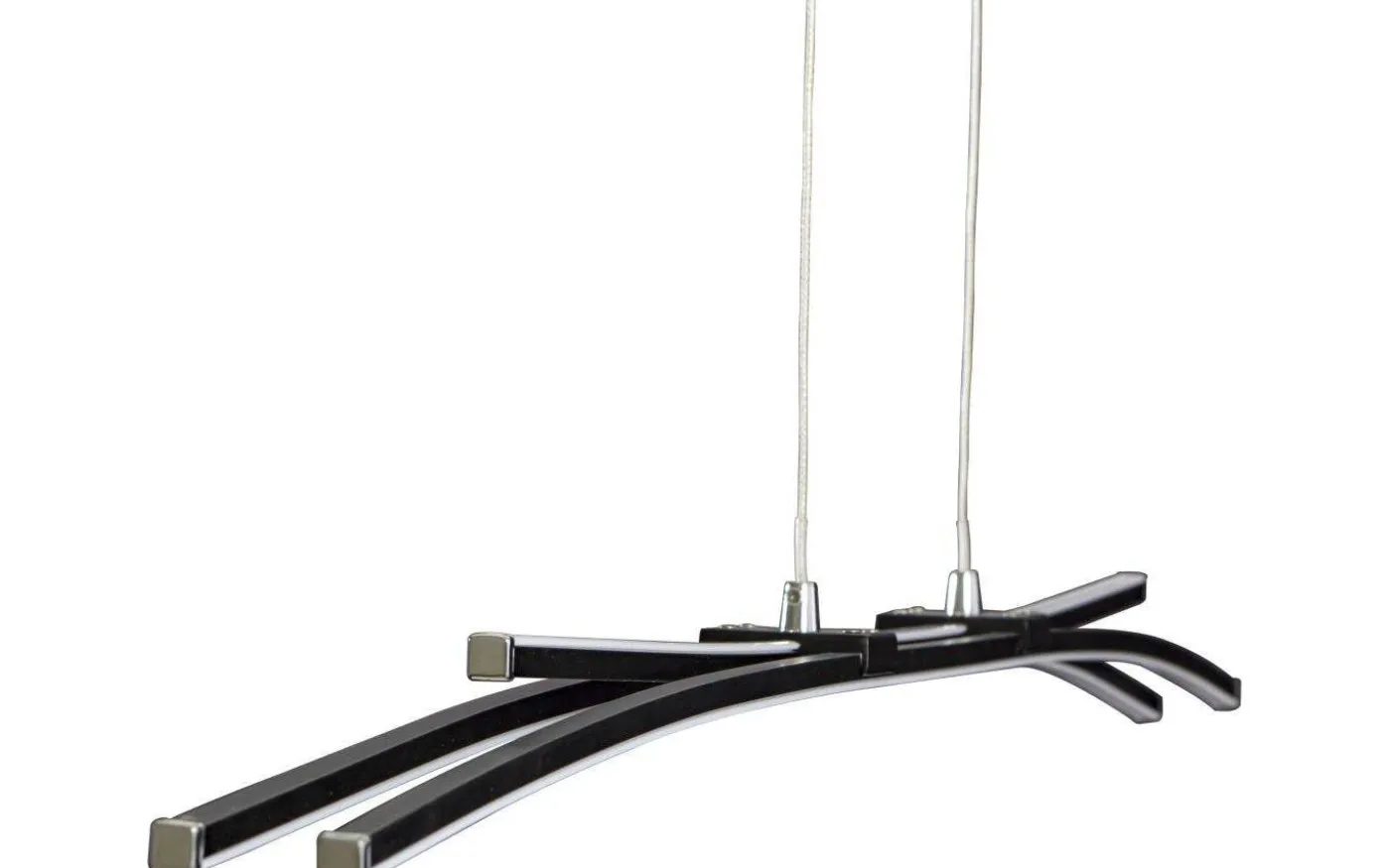 Svala taklampa i svart. Aluminium och 30W LED, ljuskällan är integrerad och kan dimmras. Lampan avger ett varmt vitt ljus som ger bra färgåtergivning. Takkopp i metall med krokupphäng och kopplingsplint, lamppropp kan monteras. Lampan kan justeras till önskad höjd. Ger ett lätt och flytande intryck, bra över matbordet.