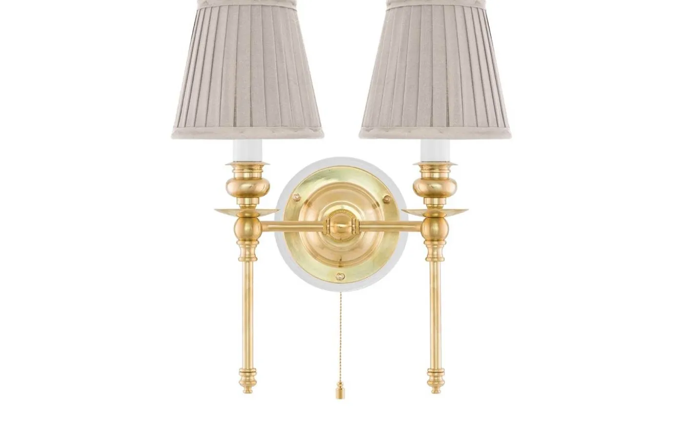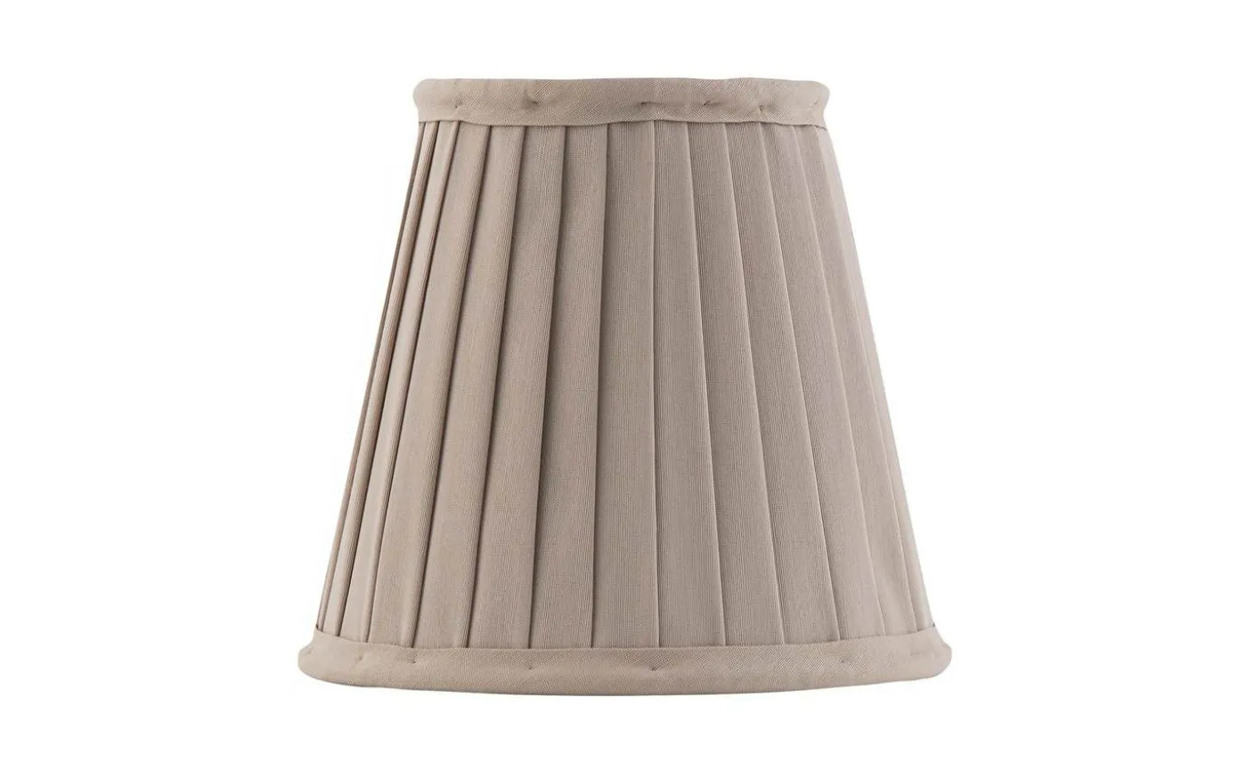 Klassisk textilskärm i veckat bomullstyg med en klämfattning för E14-lampor. Beige bomullstextil 12×14 cm Klämfattning