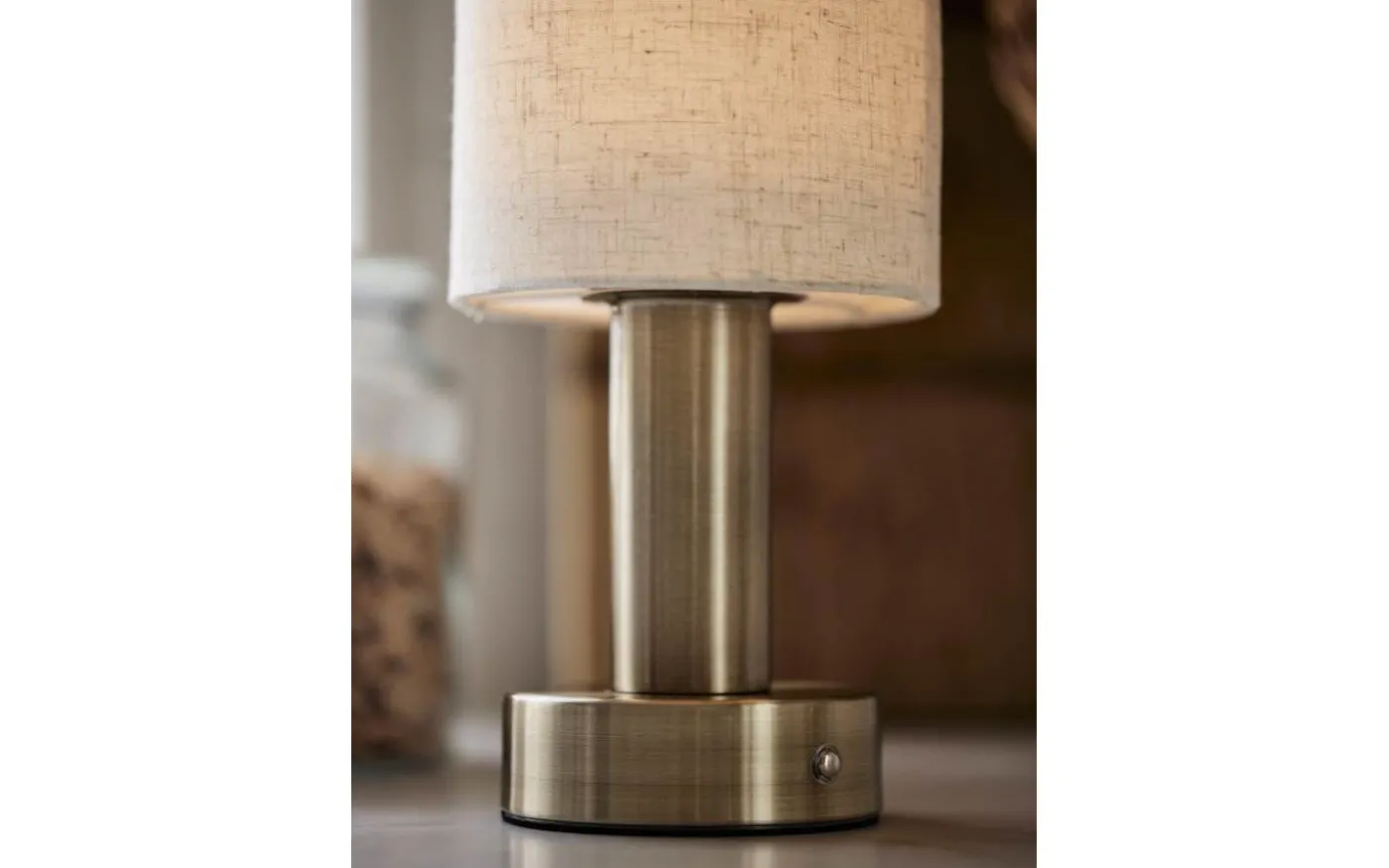 Tiara bordslampa från PR Home är en uppladdningsbar bordslampa tillverkad i lackerad metall med en vacker skärm i linnetyg.