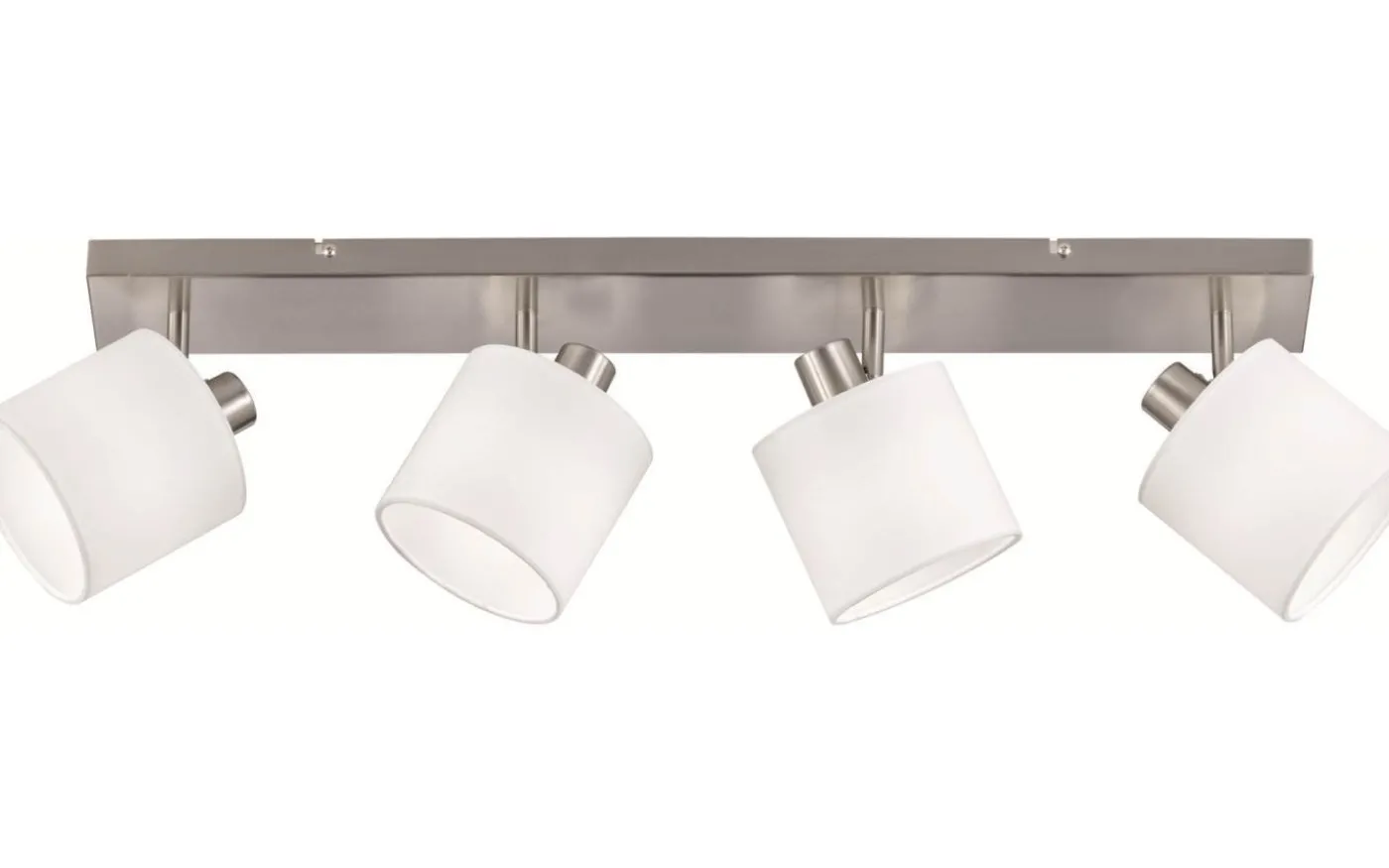 Spotlighterna i TOMMY-serien ger mysig belysning, då textilskärmar ökar komfortfaktorn och frammanar en mysig atmosfär. Samtidigt frammanar de tydliga formerna en modern och enkel stil som kan användas och kombineras på en mängd olika sätt. Spotlighten med fyra lågor har en bredd på 70 cm och är idealisk för att belysa vardagsrum och sovrum eller en avlång hall. De vridbara huvudena kan också justeras för att avsiktligt framhäva enskilda områden. Armaturen är tillverkad av metall i matt nickel och kompletteras av fyra vita tygskärmar. Kombinationen skapar moderna och eleganta ljusaccenter och ger bostadsutrymmen en behaglig välbefinnandeeffekt. För energibesparande belysning rekommenderas att använda en LED-lampa. Dessa är ett optimalt alternativ till konventionella halogenlampor och står för hög ljuskvalitet och energibesparingar på upp till 80 %. Dessutom hjälper LED-lampor dig att dra nytta av lång livslängd, låg värmeutveckling och samtidigt skydda miljön. Ljuskälla: exklusiv 4x E14 · max. 28W. Extra information: Takmontering, IP20, Lampa(or) ingår ej