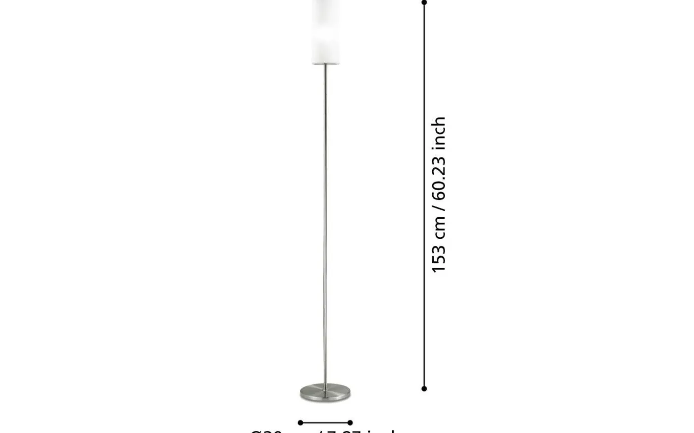 Golvlampan TROY 3 har en metallfot i matt nickelfinish och en cylindrisk lampskärm av vitt satinglas. Golvlampan tänds och släcks enkelt med den inbyggda golvströmbrytaren. Med sin enkla design fungerar golvlampan bra med nästan alla inredningsstilar och skapar mysig belysning i alla utrymmen, oavsett om det är i vardagsrummet, sovrummet eller matsalen.