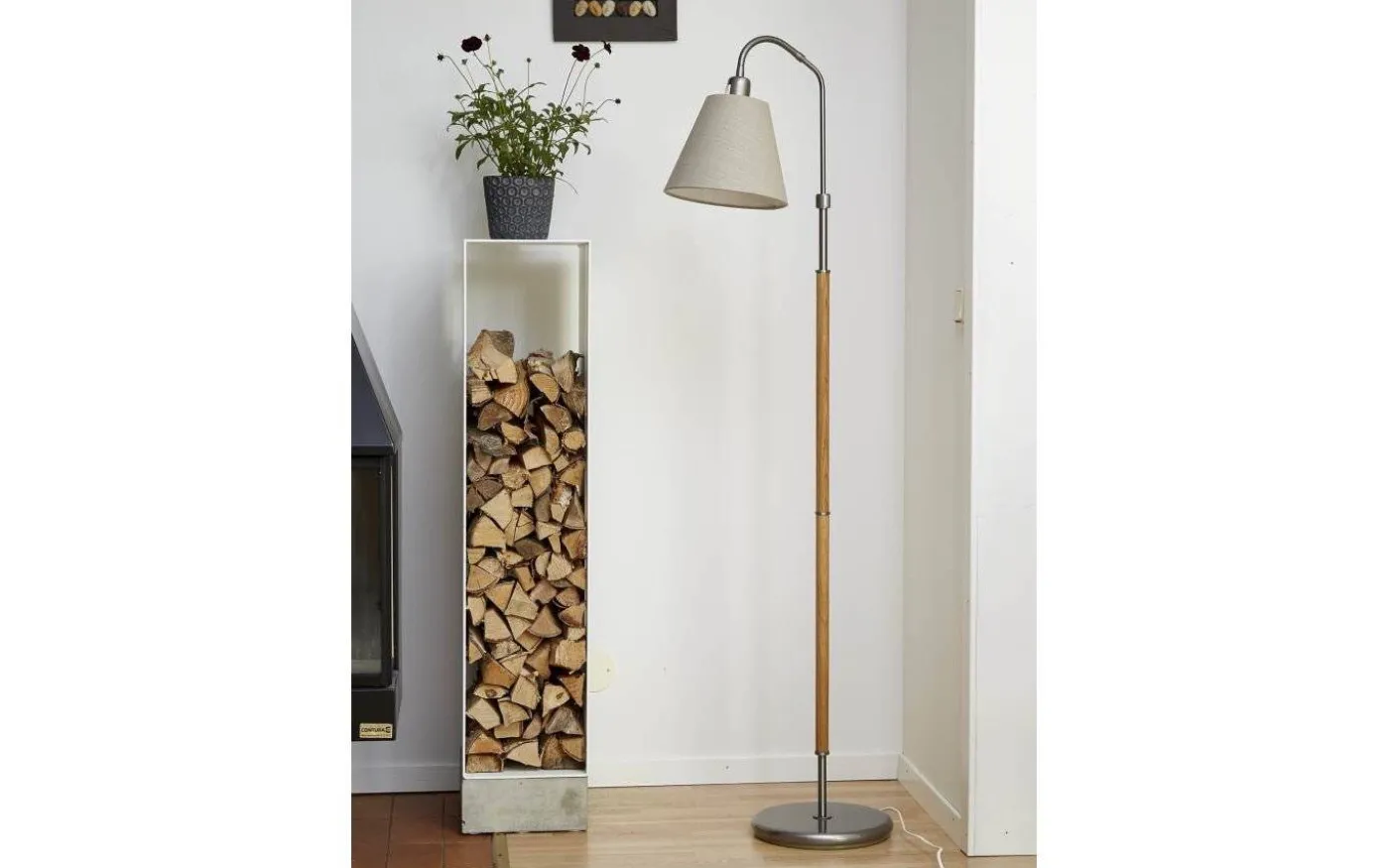 På bilden ser du Tullgarn golvfot kombinerad med Lilja toppringskärm. Observera att lampskärm säljes separat!