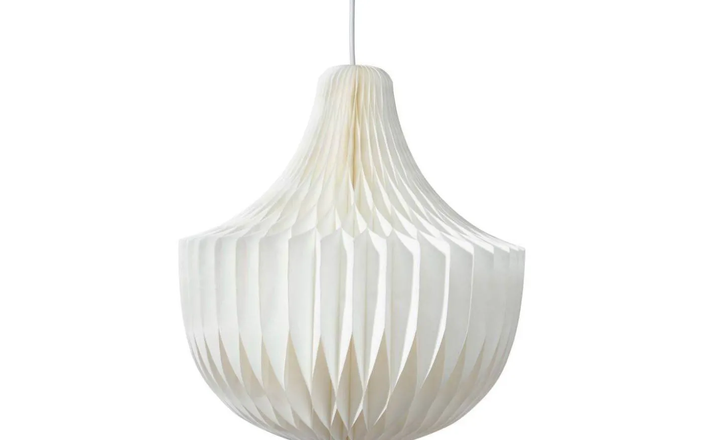 Vick takskärm från PR Home är en vacker, handgjord pappersskärm i ett vitt kraftigt FSC-märkt papper. Origamitekniken som använts är ett gammalt konsthantverk från Asien. Denna skärmen har en klassisk ljuskronsform och ger ett vackert sken när den är tänd.