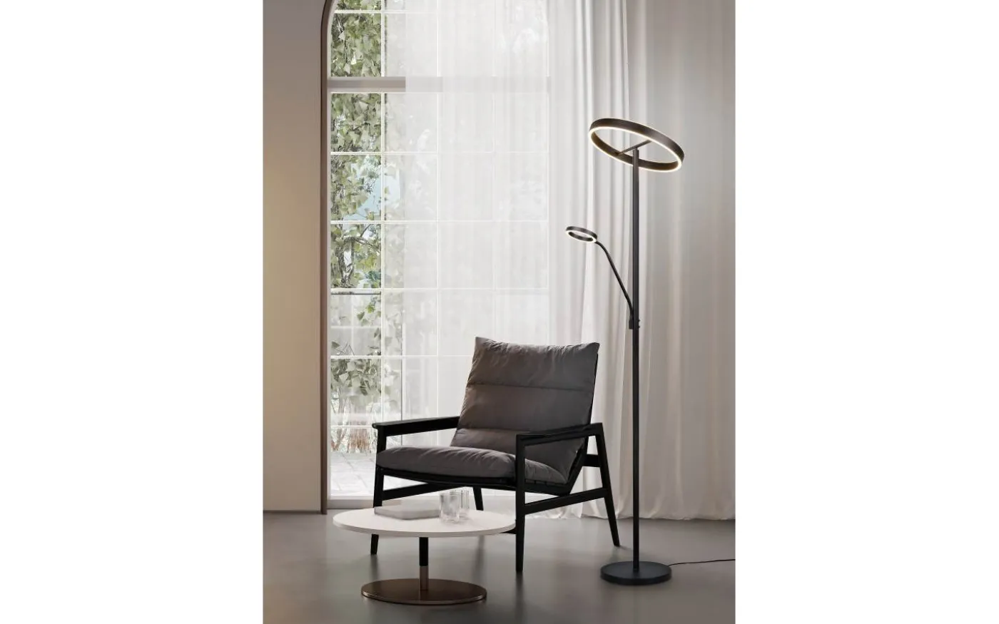 Golvlampan WILLIS imponerar med sin eleganta design och sofistikerade funktionalitet. Det ringformade lamphuvudet och den flexibla läsarmen erbjuder ett brett utbud av belysningsalternativ som kan anpassas efter individuella behov. Båda ljuskällorna kan slås på separat, medan ljusfärg och ljusstyrka kan justeras individuellt. Detta möjliggör exakt kontroll av belysningen, oavsett om det är för mysiga kvällar i soffan eller som diskret bakgrundsbelysning. Det moderna utseendet i mattsvart ger ljuset ett tidlöst utseende som smälter in i en mängd olika inredningsstilar. Dessutom har armaturerna modern LED-teknik, vilket står för hög ljuskvalitet. LED-ljuskällor kännetecknas av lång livslängd och låg värmeutveckling. Ljuskälla: inklusive 1x SMD, 39W · 1x 4600lm, 2700+3200+4000K. Ljuskälla: 2 inklusive 1x SMD, 5,5W · 1x 550lm, 2700+3200+4000K.. Extra information: Justerbar ljusfärg, Flexibel, IP20, Sensordimmer, Separat omkopplingsbar, Strömbrytare