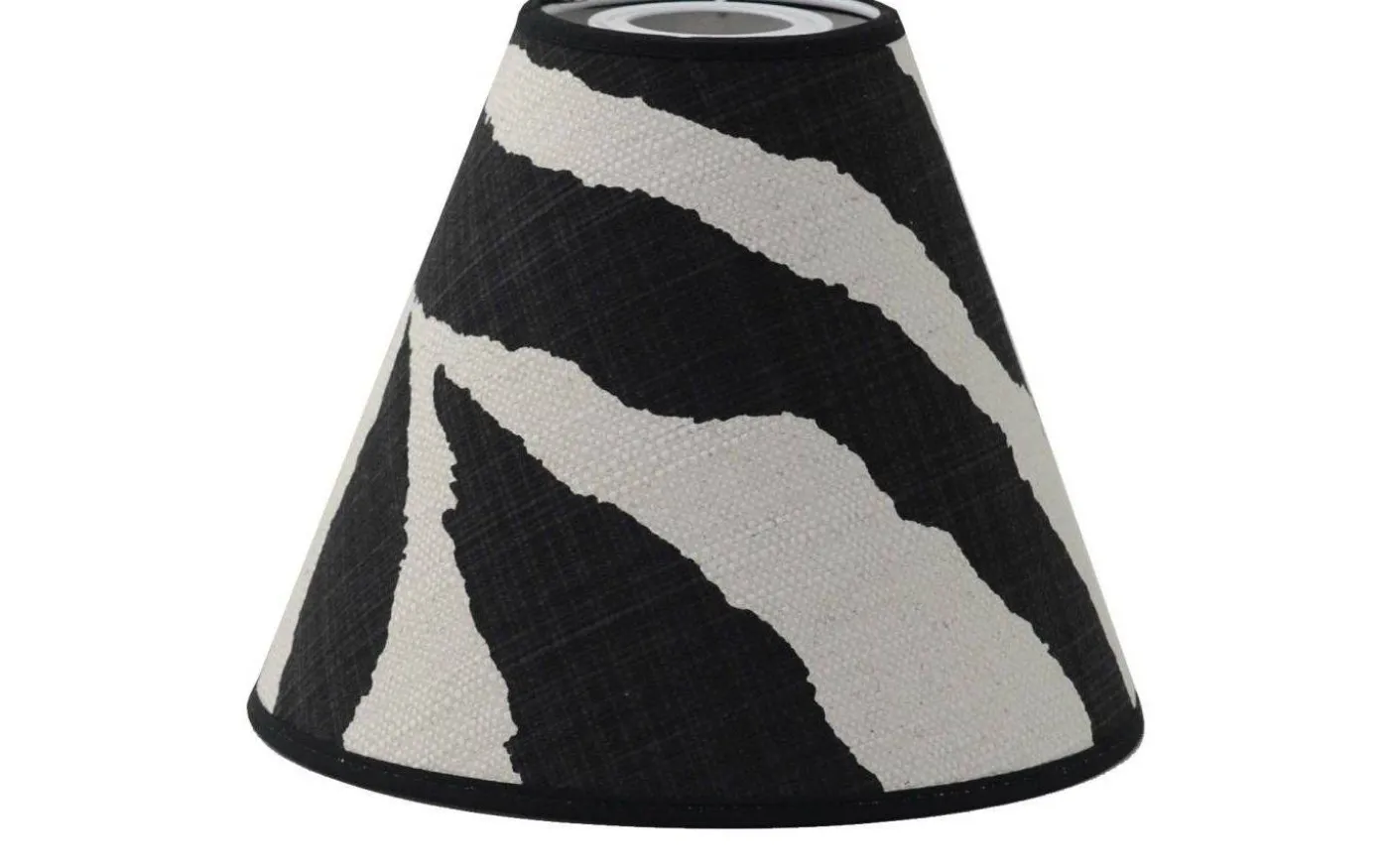 Zebra toppringskärm från välkända Hallbergs- Lightning of Sweden är en svensk tillverkadlampskärm i zebramönstrat tyg.